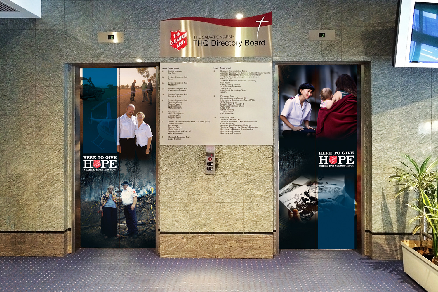 HQ foyer elevator's decals